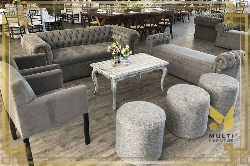 Contamos con periqueras para 4, 6 y 8 personas; y para complementar tu evento con nuestras salas capitonadas, vintage y lounge.